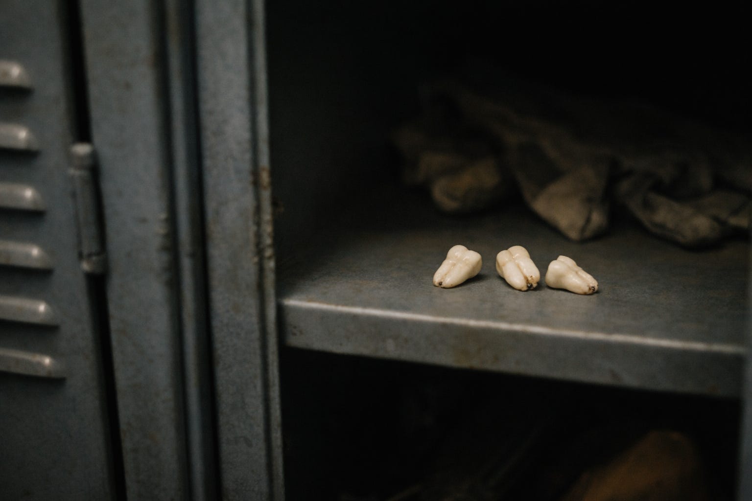 And with a great rush, there they were, a fountain of them: teeth, pouring from her mouth as if an endless supply, not her own, from some unknown portal, ripped in time to punish her.