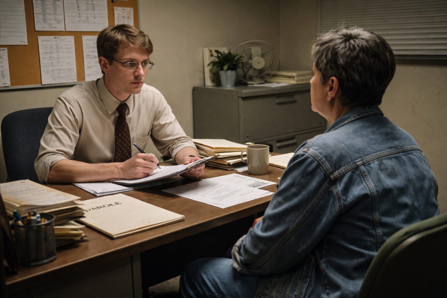 And now, she was their guest again every other Tuesday afternoon under the thumb of Mr. Bertram Heller, her parole officer. He was a slender, gaunt-faced man with sandy-colored hair and dead eyes who always looked like he would rather be anywhere but there, talking to her.